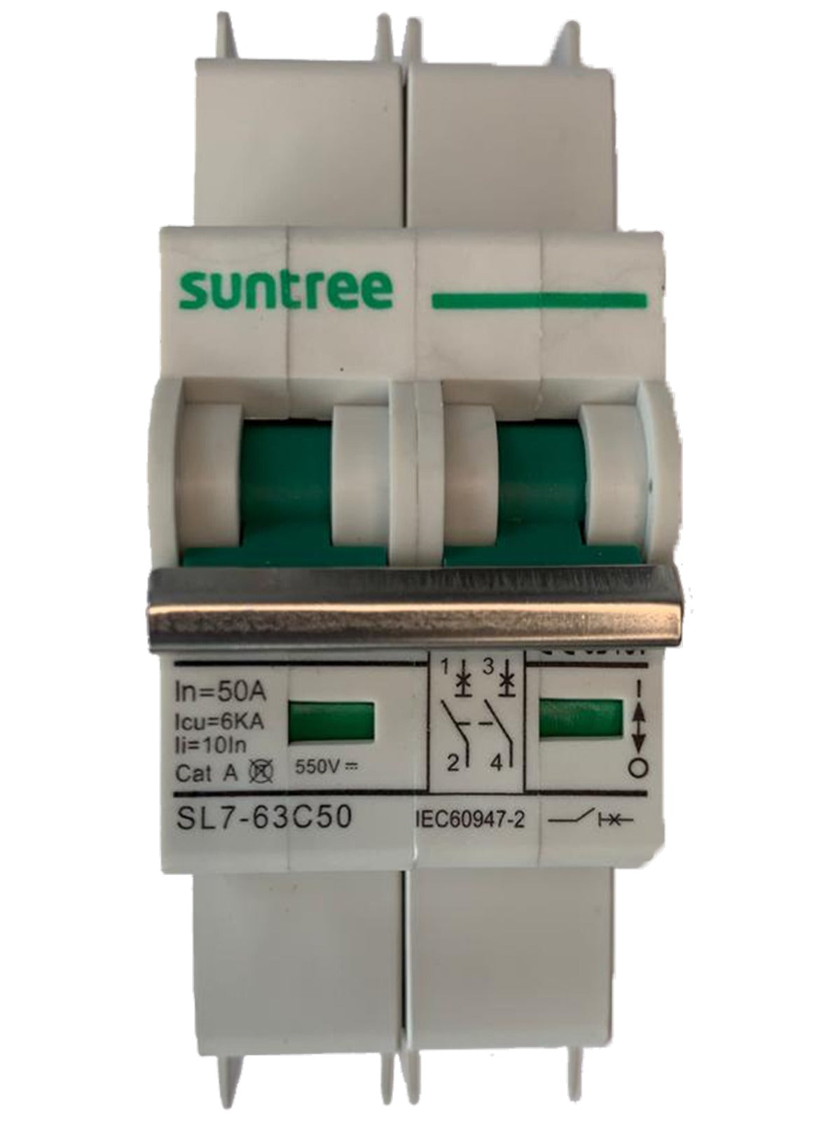 This DC 2-pole Mini Circuit Breaker is rated for 50 Amps and is non-polarised. It is 35mm din rail mountable for easy installation in switchboard/circuit breaker enclosure.