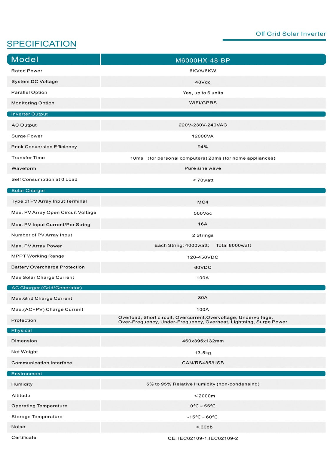 Rated Power: 6KVA/6000W - Unity Power Factor